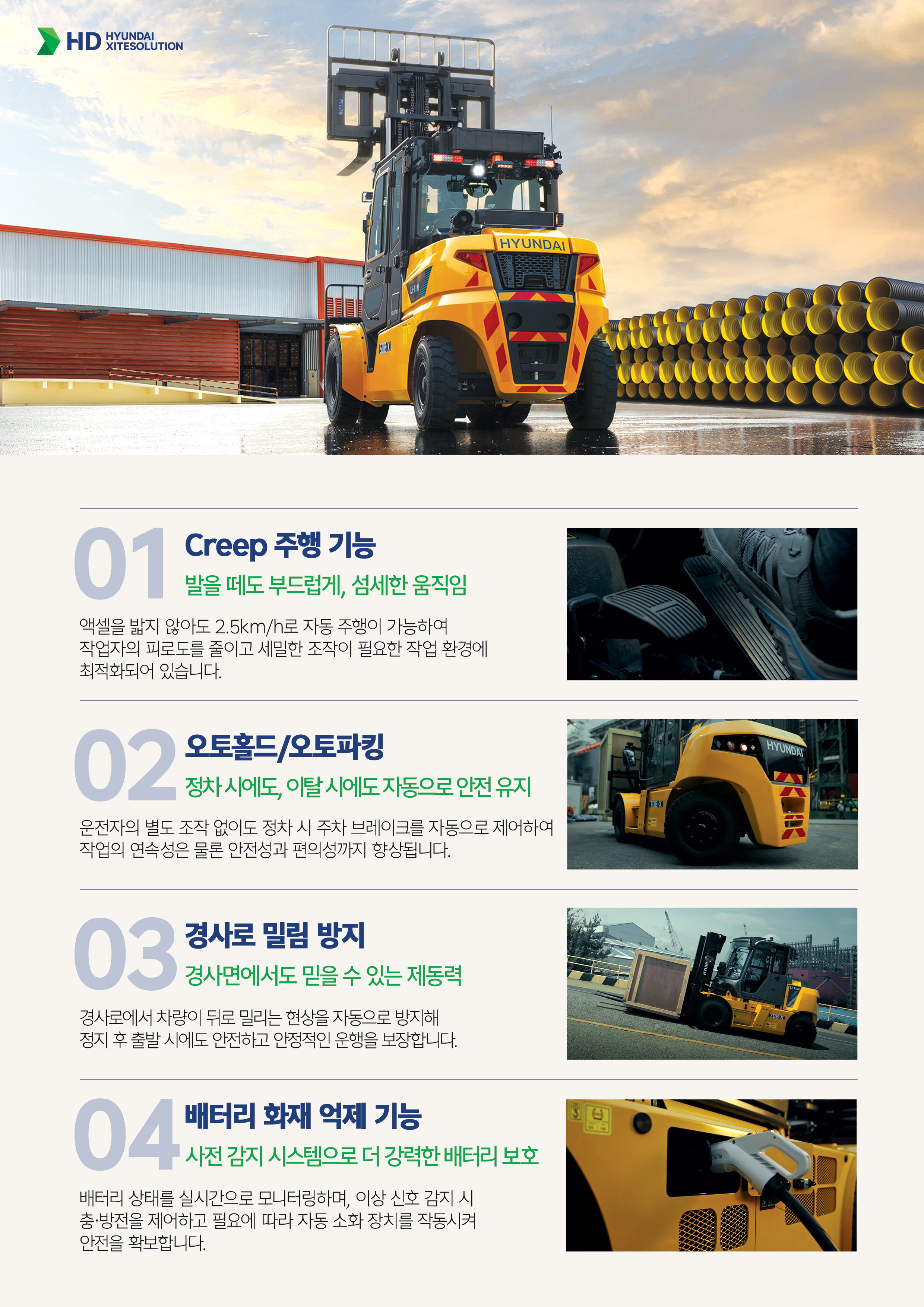 운전자를 위한 다양한 편의 기능과 인체공학적 설계를 통해 최적의 작업 환경을 제공하며, 편안하고 효율적인 작업을 가능하게 합니다